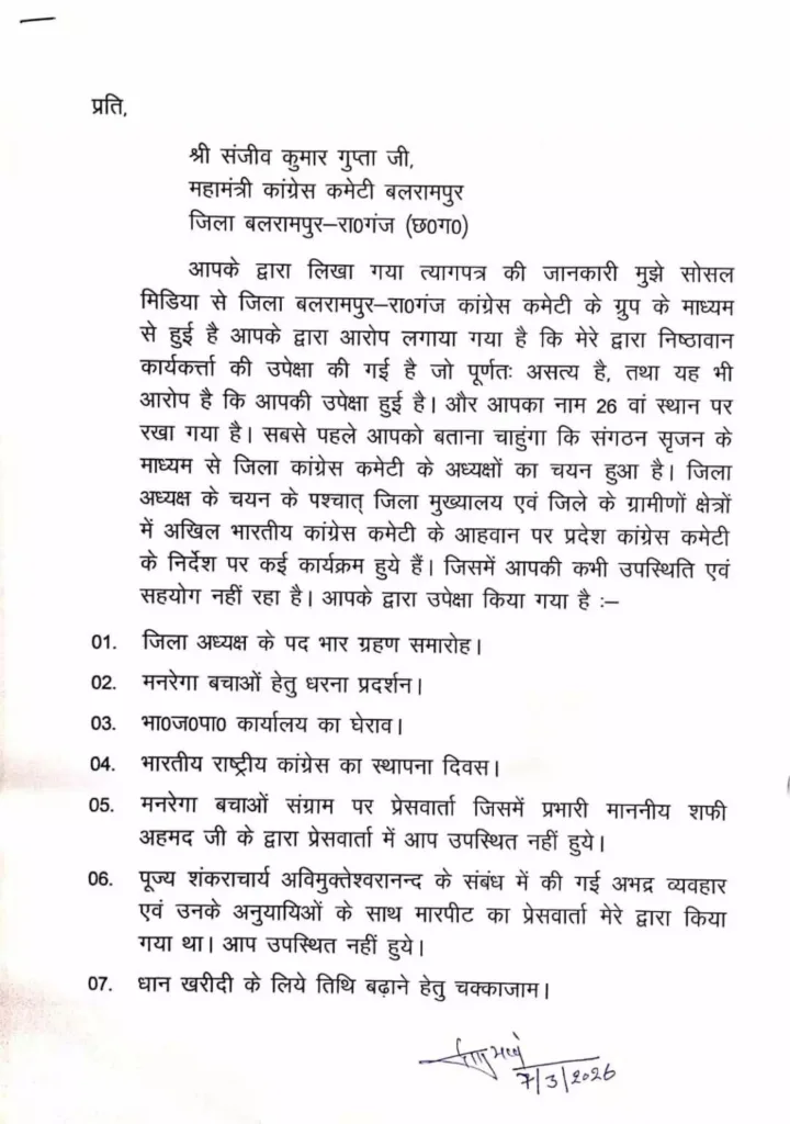 वहीं इस मामले में कांग्रेस जिला अध्यक्ष हरिहर प्रसाद यादव का भी बयान सामने आया है। उन्होंने संजीव गुप्ता पर सहयोग न करने और पार्टी के कार्यक्रमों में शामिल न होने का आरोप लगाया है।
