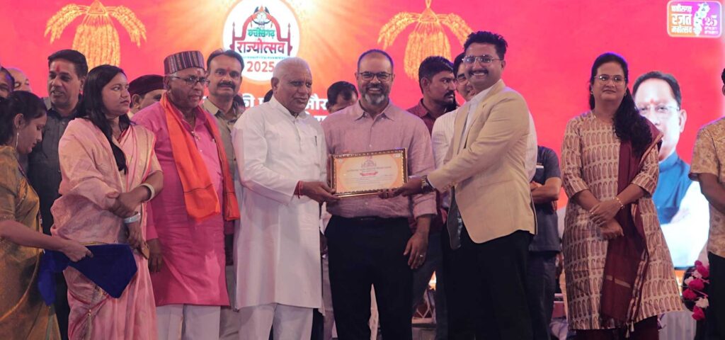 मुंगेली। छत्तीसगढ़ राज्य की स्थापना की रजत जयंती के अवसर पर आयोजित भव्य राज्योत्सव में डॉ. मनीष बंजारा को आदि कर्मयोगी अभियान में उनके उल्लेखनीय और नवाचारी योगदान के लिए सम्मानित किया गया।