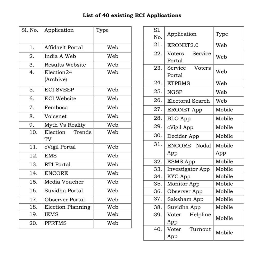 ईसीआईनेट में वोटर हेल्पलाइन ऐप वोटर टर्नआउट ऐप सीविजिल, सुविधा 2, ई एस एम एस, सक्षम, और के वाय सी ऐप जैसे ऐप शामिल होंगे, जिन्हें मिलाकर अब तक 5.5 करोड़ से अधिक बार डाउनलोड किया जा चुका है।