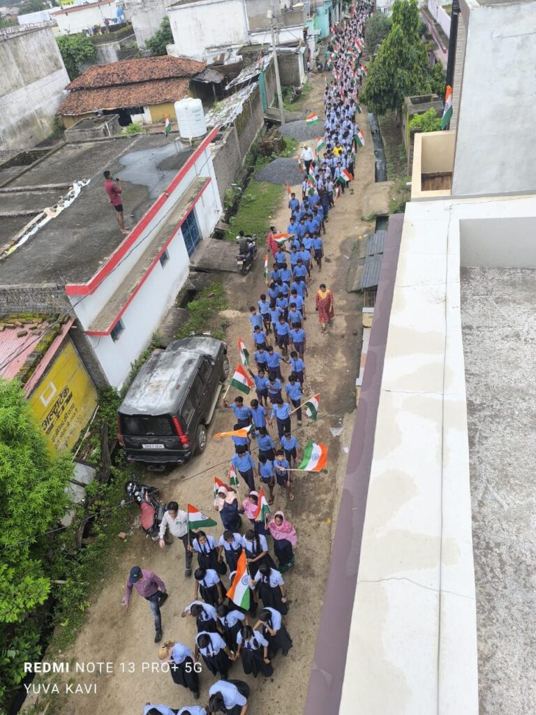 इस वृहद तिरंगा यात्रा में स्वामी आत्मानंद स्कूल, कन्या शाला एवं सरस्वती शिशु मंदिर के छात्र छात्राओं ने बढ़ चढ़कर हिस्सा लिया और लगभग 1 किलोमीटर की लंबी कतार के साथ एक हज़ार से भी अधिक बच्चों ने कार्यक्रम में अपनी भूमिका निभाई.