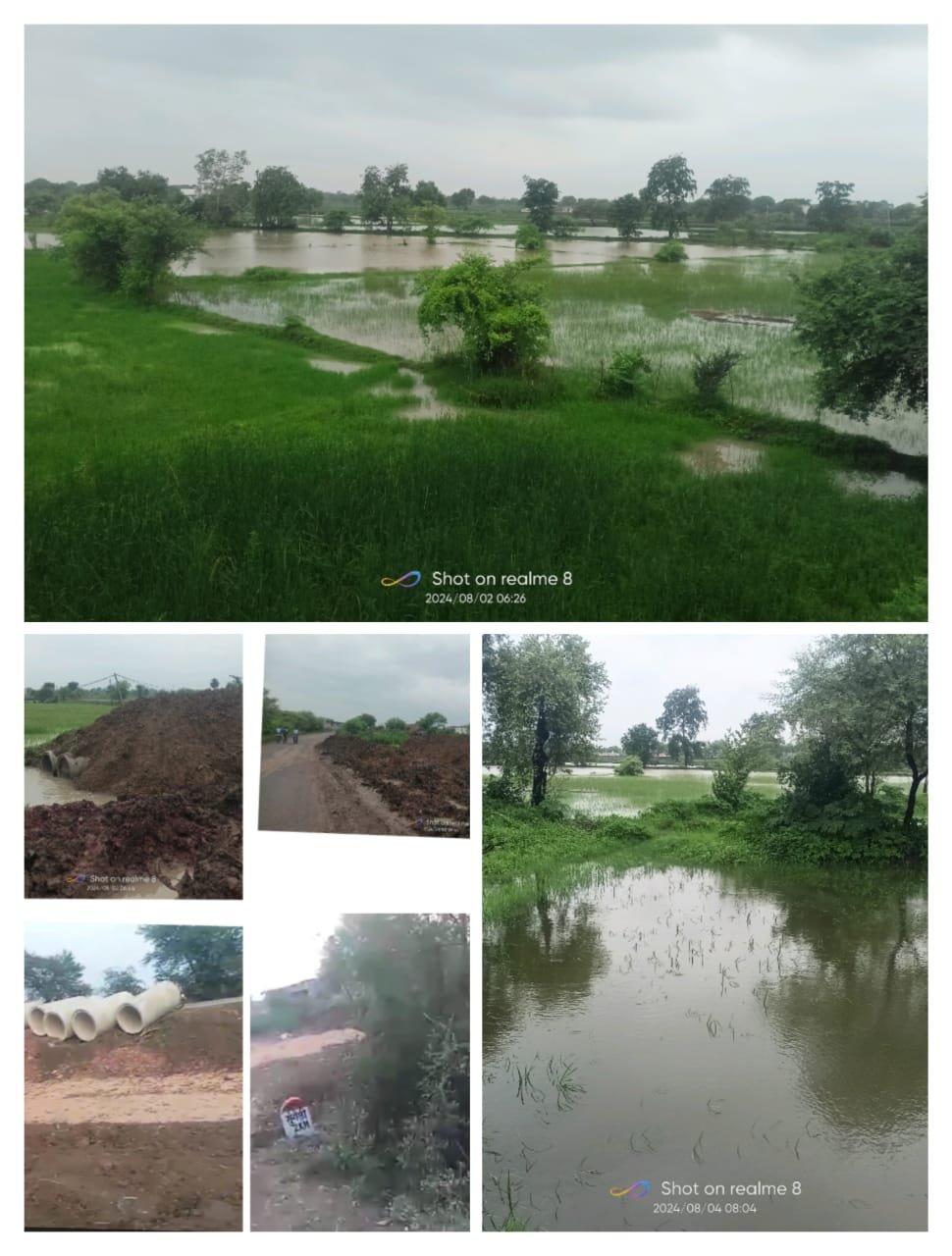 मिंकु,विकाश, लखन पाटले,कुंदन बाई, रामकुमार साहू आदि किसानों ने बताया कि पानी के निकासी के लिए बने सरकारी नाले में छोटे पुलिया को मिट्टी डालकर अपने खेतों के सामने को पाट दिया है जिसके चलते वह पानी अन्य किसानों के खेतों में जमा हो रहा है और लगभग 100 एकड़ जमीन के फसल इसके चलते बर्बाद हो रही है,इस नाले में बहुत दूर से अनेको गांव के पानी इस नाले से गुजरती है, और ज्यादा बरसात हुआ तो हमारे गांव की पूरी बस्ती डूब जाएगी।