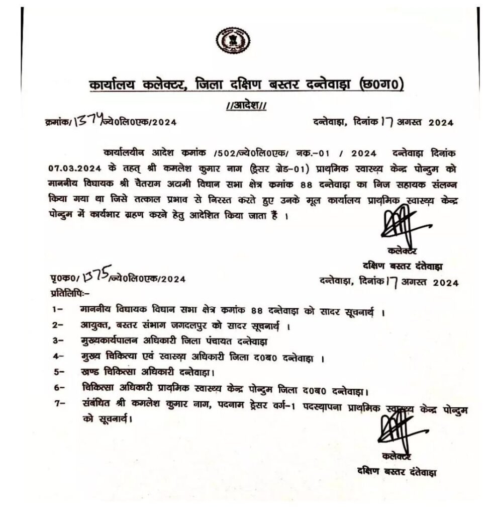 दंतेवाड़ा से एक चौंकाने वाली खबर सामने आई है। भाजपा विधायक चैतराम अटामी के निजी सहायक द्वारा महिला डॉक्टरों से अभद्र व्यवहार किए जाने के बाद, कलेक्टर मयंक चतुर्वेदी ने उन्हें उनके पद से हटा दिया है। आइए आपको विस्तार से बताते हैं कि यह मामला क्या है।