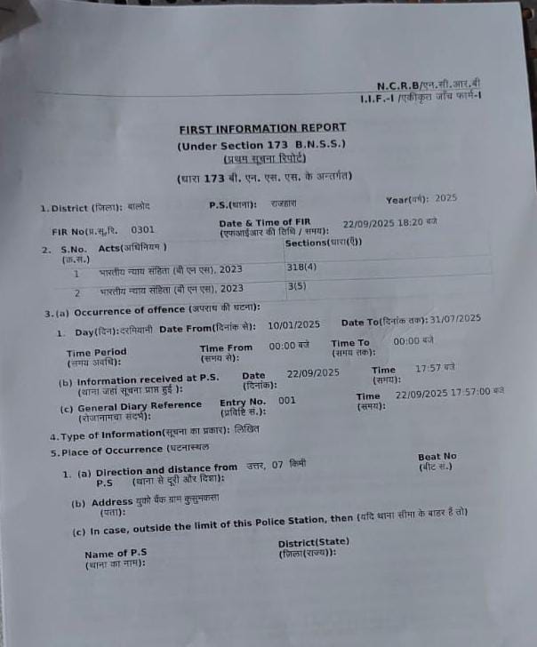 बालोद/ रायपुर: ठगी का मामला प्रकाश में आया है दल्लीराजहरा थाना क्षेत्र में,,नाबार्ड के नाम पर ठगी का बड़ा मामला सामने आया है। खुद को नाबार्ड अधिकारी बताकर कुछ जालसाजों ने बालोद व मानपुर-मोहला-चौकी जिले के सैकड़ों गरीब आदिवासी कृषकों से करोड़ों रुपये की धोखाधड़ी की। आरोपियों ने किसानों के नाम पर विभिन्न बैंकों से लाखों रुपये के लोन पास कराए और फिर उनके खातों से संपूर्ण राशि फर्जी तरीके से आहरण कर ली।