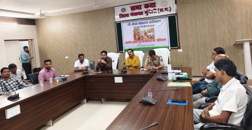 मुंगेली- सड़क दुर्घटनाओं में बढ़ती जनहानि और पशुहानि की गंभीरता को देखते हुए कलेक्टर कुन्दन कुमार के मार्गदर्शन में जिले में ‘‘गौ सेवा संकल्प अभियान’’ की शुरुआत की गई है। इस अभियान का मुख्य उद्देश्य बेसहारा एवं सड़कों पर छोड़े गए मवेशियों के बेहतर प्रबंधन, सेवा और संरक्षण को सुदृढ़ करना है। इसी कड़ी में मुंगेली विकासखण्ड के सरपंचों, सचिवों और पटवारियों को गौ सेवा एवं संरक्षण के संबंध में जिला पंचायत के सभाकक्ष में प्रशिक्षण प्रदान किया गया।