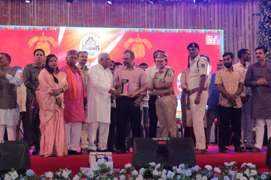 मुंगेली: छत्तीसगढ़ राज्य स्थापना के रजत जयंती वर्ष में मुंगेली के वीर धनंजय सिंह राजपूत स्टेडियम में आयोजित तीन दिवसीय राज्योत्सव का भव्य समापन हुआ। विभिन्न विभागों के स्टॉलों के माध्यम से विकास की उपलब्धियों को प्रदर्शित करने वाले इस उत्सव में विधायक पुन्नूलाल मोहले मुख्य अतिथि के रूप में शामिल हुए। उन्होंने मां सरस्वती और छत्तीसगढ़ महतारी की प्रतिमा के समक्ष दीप प्रज्वलन एवं माल्यार्पण कर कार्यक्रम का शुभारंभ किया।