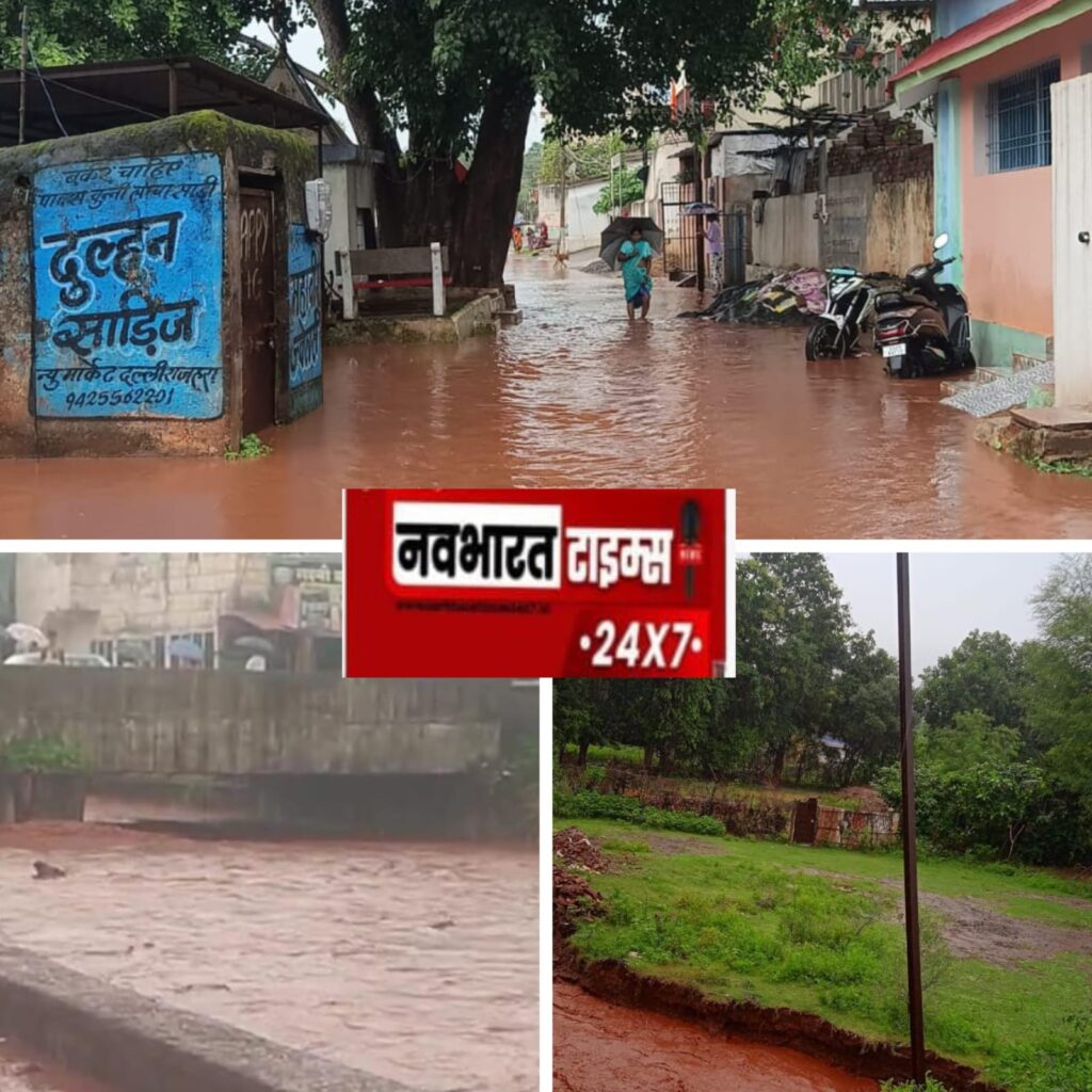 दल्लीराजहरा,,खनिज नगरी दल्ली राजहरा में रविवार की तड़के 3 बजे से हो रही मूसलधार बारिश ने शहर की पूरी व्यवस्था की पोल खोलकर रख दी। वार्ड क्रमांक 04, 10, 11, 12, 13, 15, 20, 22, 23, 24, सब्ज़ी मार्केट और चिखलाकसा के निचले दफाई क्षेत्रों में हालात बाढ़ जैसे बन गए। झरनों की नगरी कहे जाने वाला दल्लीराजहरा पूरा का पूरा जलमग्न हो गया। नालों का पानी घरों में घुस गया, सड़कें तालाब बन गईं, और गरीब जनता तड़पती रही।