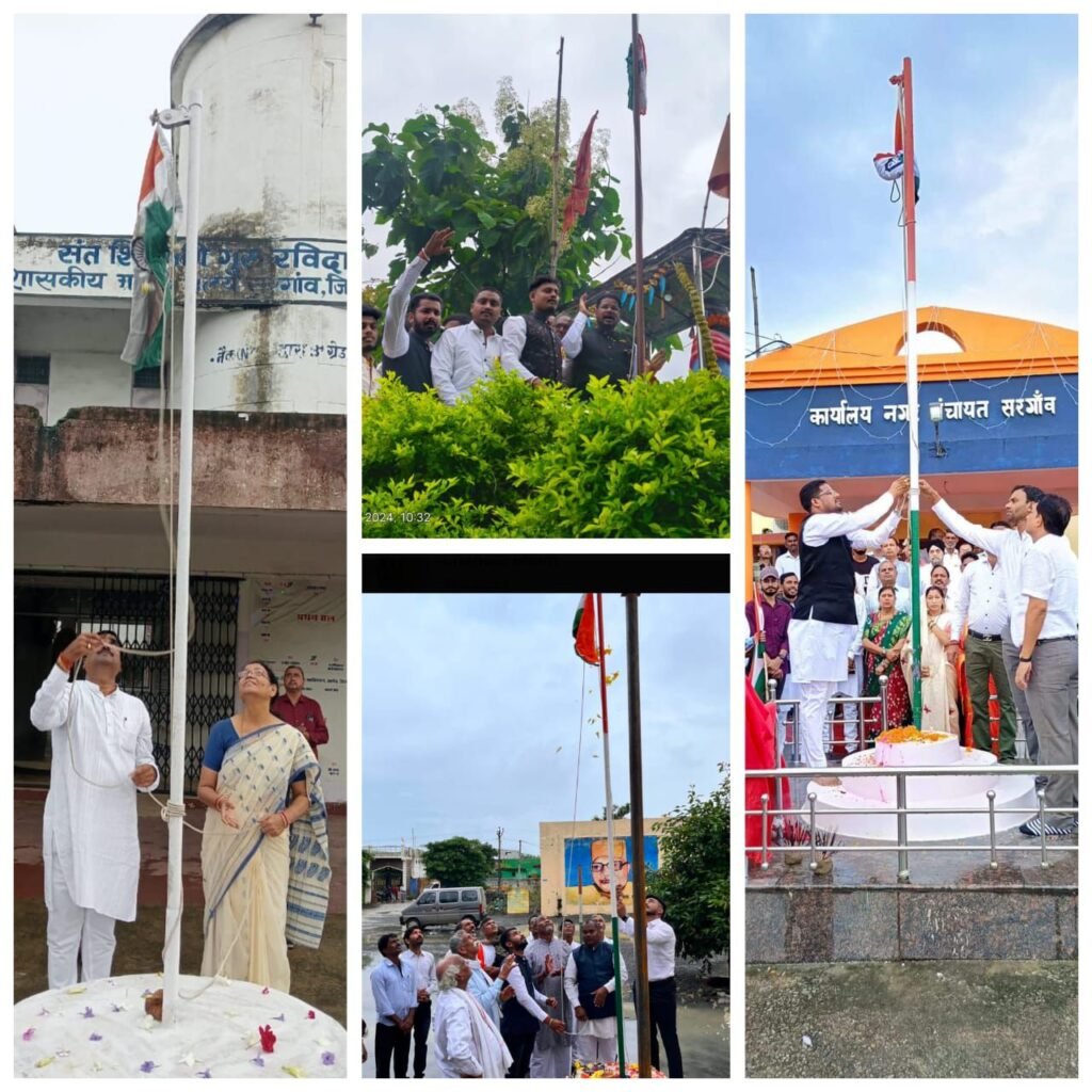 साथ ही नगर पंचायत सरगांव में स्थित संत शिरोमणि गुरु रविदास शासकीय महाविद्यालय सरगांव में जनभागीदारी अध्यक्ष कैलाश ठाकुर,स्वामी आत्मनन्द स्कूल सरगांव में जनभागीदारी अध्यक्ष राम जुड़ावन साहू,कन्या हायर सेकंडरी स्कूल सरगांव में जनभागीदारी अध्यक्ष दविंदर कौंर, थाना सरगांव, तहसील सरगांव, विधुत मंडल सरगांव, कस्तूरबा गांधी आवासीय विद्यालय सरगांव, प्राथमिक शाला सरगांव, प्राथमिक शाला पीएमश्री साहू मोहल्ला सरगांव,सरस्वती शिशु मंदिर सरगांव, शासकीय प्राथमिक शाला खपरी में ध्वजारोहण किया गया।