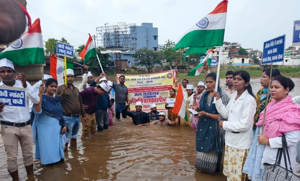 नदी मे जल सत्याग्रह कर कर्मचारी नारेबाजी करते रहे। इससे पहले भी अलग-अलग तरीकों से प्रदर्शन कर NHM कर्मचारी अपनी मांग रख चुके हैं। लेकिन सरकार द्वारा मांगो को सुना नहीं जा रहा है। वहीं बुधवार को संविदा स्वास्थ्य कर्मचारियों द्वारा आपने बनाया है तो संवारोगे कब थीम पर सवाल रैली निकालते हुए जिला भाजपा कार्यालय के सामने प्रदर्शन किया जायेगा।