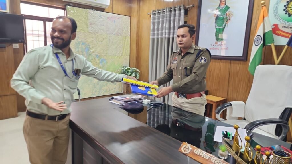 बालोद। नववर्ष 2026 के अवसर पर पुलिस और बैंकिंग संस्थानों के बीच आपसी समन्वय एवं सहयोग को और अधिक सुदृढ़ करने की दिशा में एक सराहनीय पहल की गई। इंडियन बैंक बालोद जिला मुख्यालय के शाखा प्रबंधक किशोर मेश्राम ने जिला पुलिस अधीक्षक योगेश पटेल से सौजन्य भेंट कर बैंक द्वारा अधिकृत रूप से जारी नववर्ष कैलेंडर एवं सर्वसुविधायुक्त डायरी सप्रेम भेंट की तथा अग्रिम नववर्ष की शुभकामनाएं दीं।