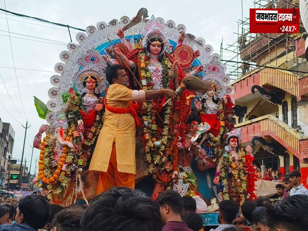 मां दुर्गा की विदाई के लिए नगर के विभिन्न पंडालों से विसर्जन यात्राएं निकाली गईं। सजीव झांकियों, ध्वज और पुष्प सजावट से सुसज्जित रथ पर विराजित मां दुर्गा की प्रतिमा जब मार्ग पर निकली, तो श्रद्धालु भक्ति में लीन होकर नृत्य व गीत-संगीत में मग्न हो उठे। जगह-जगह आरती, पुष्पवर्षा और नारियल अर्पण से भक्तों ने माता को विदाई दी।