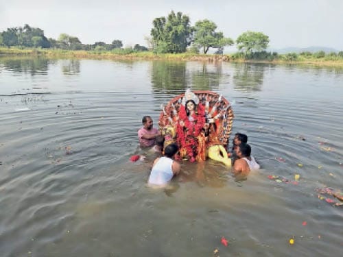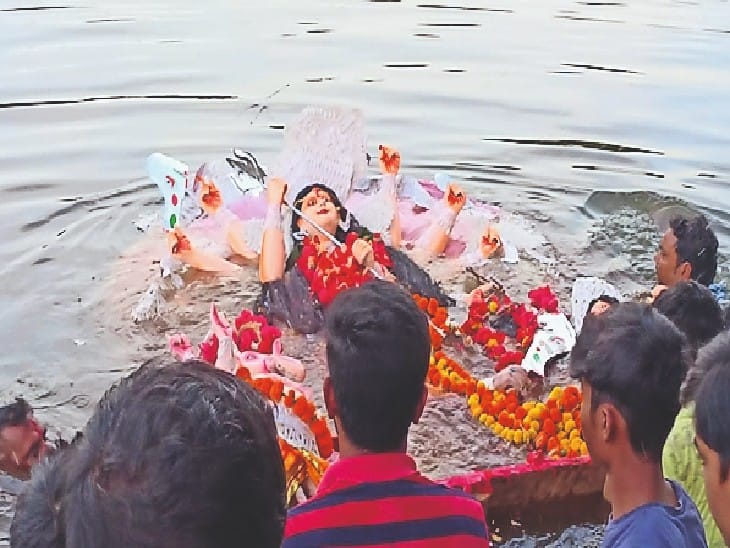 हर्षोल्लास के साथ विसर्जन स्थल पर गूंजे मंत्रोच्चार