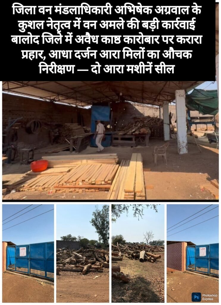 बालोद जिले में अवैध काष्ठ कारोबार पर करारा प्रहार, आधा दर्जन आरा मिलों का औचक निरीक्षण — दो आरा मशीनें सील