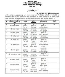 छत्तीसगढ़ शासन के नगरीय प्रशासन एवं विकास विभाग ने बड़ा प्रशासनिक फेरबदल करते हुए कुल 37 अधिकारियों और कर्मचारियों का तबादला किया है। इस संबंध में आदेश भी जारी किया गया है।