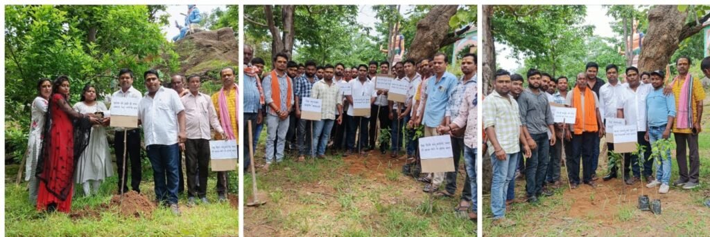 रायगढ़ : रायगढ़ पूर्वांचल क्षेत्र के इष्ट देवी मां मानकेश्वरी जामगांव में विराजमान है जिसे दर्शन करने लगभग पूर्वांचल ही नहीं अपितु पूरे जिले के लोग आते हैं मां माँनकेश्वरी सबकी मनोकामना पूर्ण करती हैं लगातार वृक्षारोपण को बढ़ावा देने वाले साथ ही साथ उसकी रक्षा एवं सेवा करने वाले युवा नेता राजू बेहरा के नेतृत्व में मंदिर परिसर पर बृहद वृक्षारोपण अभियान चलाया गया साथ ही साथ उसकी रक्षा करने की जिम्मेदारी युवा टीम के साथ लिया गया और सर्वप्रथम सभी ईस्ट जनों के हाथ मंदिर परिसर पर रुद्राक्ष का पौधा लगाया गया सबके लिए खाने की उचित व्यवस्था भी समिति द्वारा किया गया था .