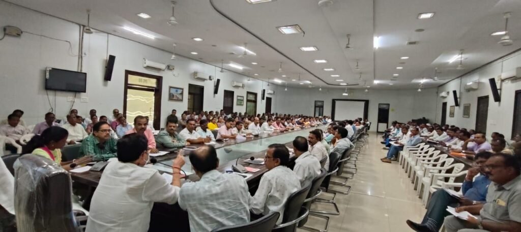 शैलेश शर्मा : रायगढ़ / कलेक्टर कार्तिकेया गोयल के निर्देशन में जिला शिक्षा अधिकारी डॉ. के.वी.राव की उपस्थिति में हाई स्कूल एवं हायर सेकेंडरी स्कूलों के प्राचार्यो की विभागीय समीक्षा बैठक सृजन सभा कक्ष में आयोजित हुई।