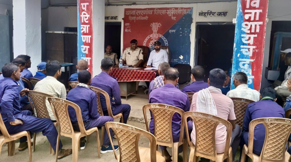 साथ ही, किसी भी आपात स्थिति, घटना या दुर्घटना की त्वरित सूचना पुलिस को देने पर जोर दिया गया।बैठक का मुख्य उद्देश्य ग्रामीण क्षेत्रों में सुरक्षा और सतर्कता बढ़ाना तथा अपराधों की त्वरित रोकथाम सुनिश्चित करना था। थाना प्रभारी सरगांव संतोष कुमार शर्मा व स्थानीय जनप्रतिनिधि भी इस अवसर पर उपस्थित रहे।