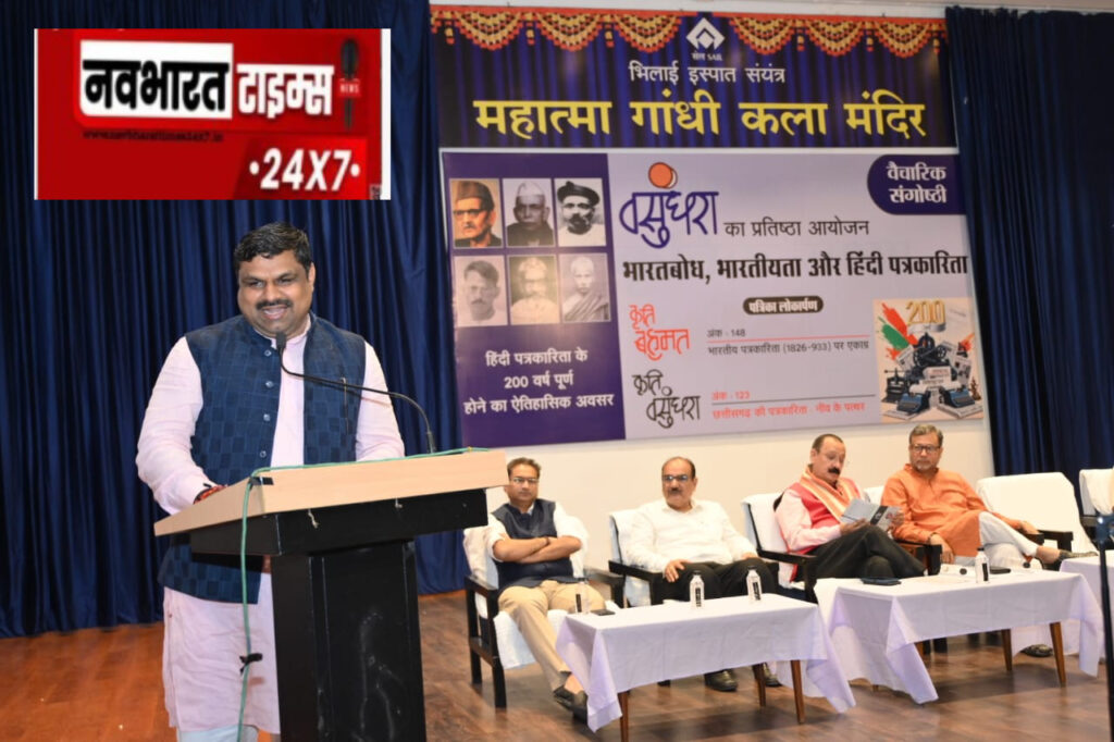 भिलाई। महात्मा गांधी कला मंदिर, सिविक सेंटर में आज हिन्दी पत्रकारिता की 200वीं वर्षगांठ पर “भारत बोध, भारतीयता और हिन्दी पत्रकारिता” विषयक संगोष्ठी आयोजित की गई। कार्यक्रम के मुख्य अतिथि छत्तीसगढ़ के स्कूल शिक्षा, ग्रामोद्योग, विधि एवं विधायी मंत्री श्री गजेन्द्र यादव थे।
