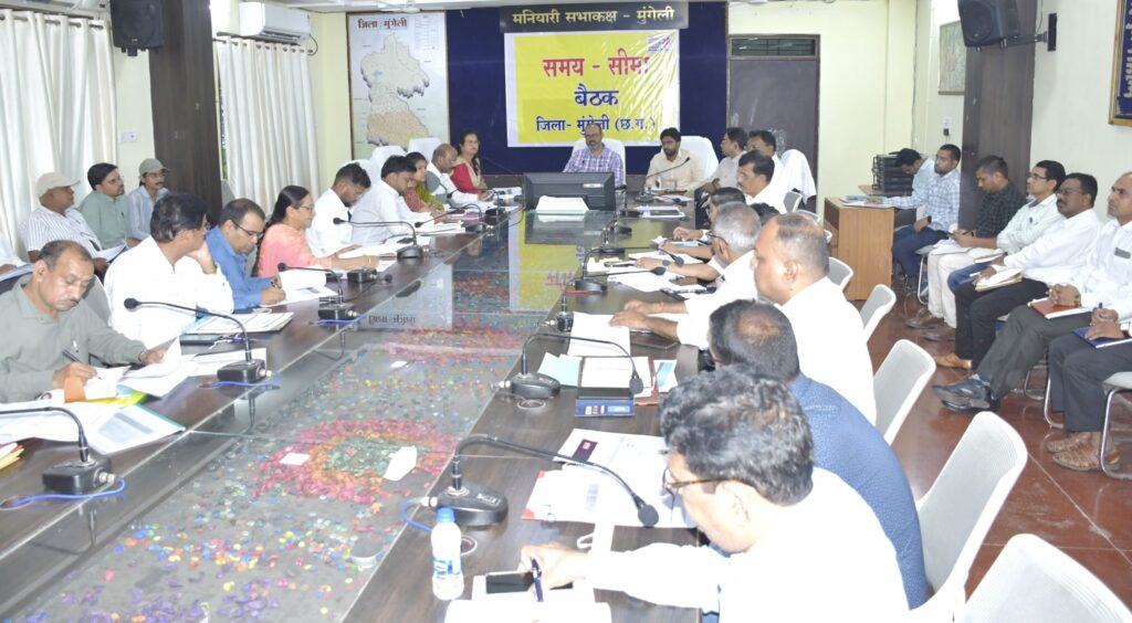 डिजिटल कार्यान्वयन और राजस्व प्रक्रियाओं में तेजीकलेक्टर ने सभी विभागों को ई-ऑफिस प्रणाली के माध्यम से कार्य निष्पादन सुनिश्चित करने के निर्देश दिए। राजस्व विभाग को नामांतरण, फौती, डिजिटलाइजेशन तथा ई-कोर्ट संबंधी प्रकरणों में तेजी लाने कहा। इसी प्रकार, पीएमजीएसवाई, पीएचई, पीडब्ल्यूडी, मत्स्य विभाग सहित अन्य विभागों की समीक्षा की गई और लक्ष्यों के अनुरूप कार्य पूर्ण करने पर बल दिया।बैठक में वनमंडलाधिकारी अभिनव कुमार, अतिरिक्त कलेक्टर निष्ठा पाण्डेय, जिला पंचायत सीईओ प्रभाकर पाण्डेय, अपर कलेक्टर जी.एल. यादव, संयुक्त कलेक्टर अजीत पुजारी, मुंगेली एसडीएम अजय शतरंज, पथरिया एसडीएम रेखा चंद्रा सहित सभी विभागीय अधिकारी उपस्थित रहे।