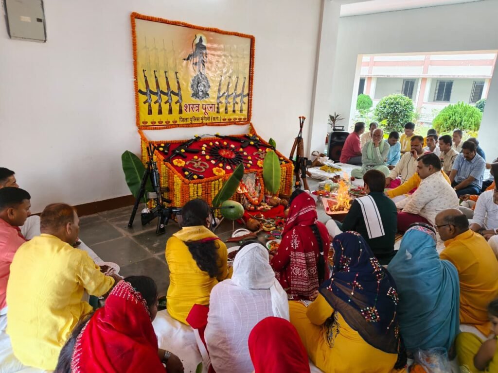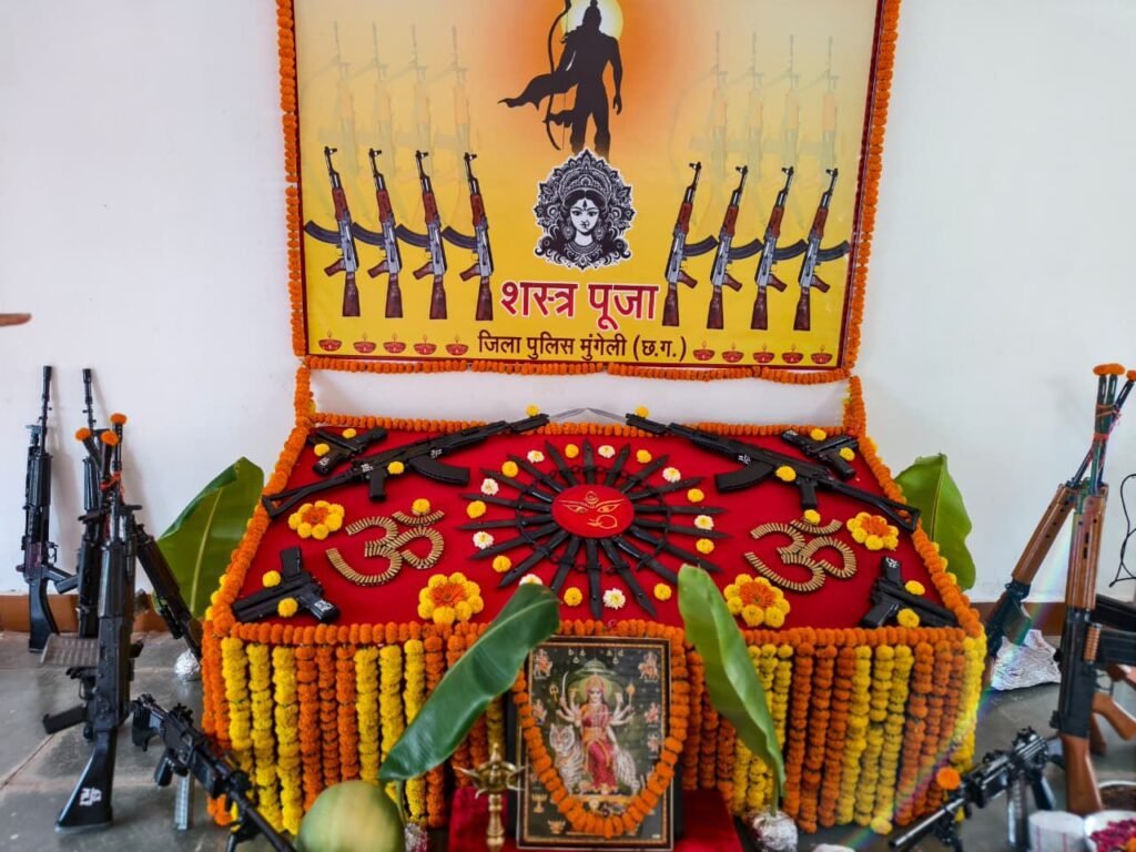 मुंगेली पुलिस लाइन में आयोजित इस कार्यक्रम में एसपी भोजराम पटेल ने पुलिस जवानों और अधिकारियों के साथ मिलकर शस्त्रों को सजाकर विधि-विधान से पूजा की। पूजा के अंत में परंपरा अनुसार रखिया कद्दू को काटकर हवाई फायरिंग की गई, और वाहनों की पूजा के बाद जनता की सुरक्षा का संकल्प लिया गया। जिले के सभी थानों में भी इसी प्रकार शस्त्र पूजा संपन्न हुई।