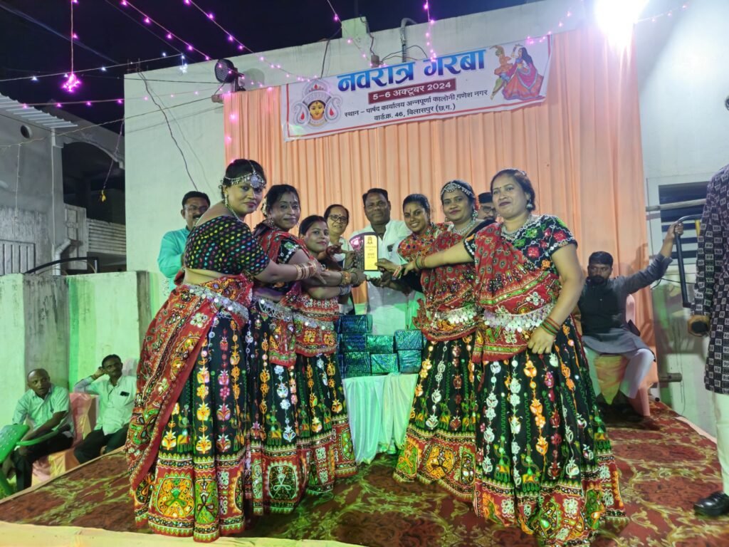 बिलासपुर। गणेश नगर वार्ड नंबर 46 के पार्षद कार्यालय में नवरात्र गरबा महोत्सव का आयोजन बड़े ही धूमधाम और भव्यता के साथ किया गया। यह नवरात्र गरबा महोत्सव का तीसरा वर्ष है और इसे हर साल की तरह इस बार भी विशेष रूप से मनाया गया।