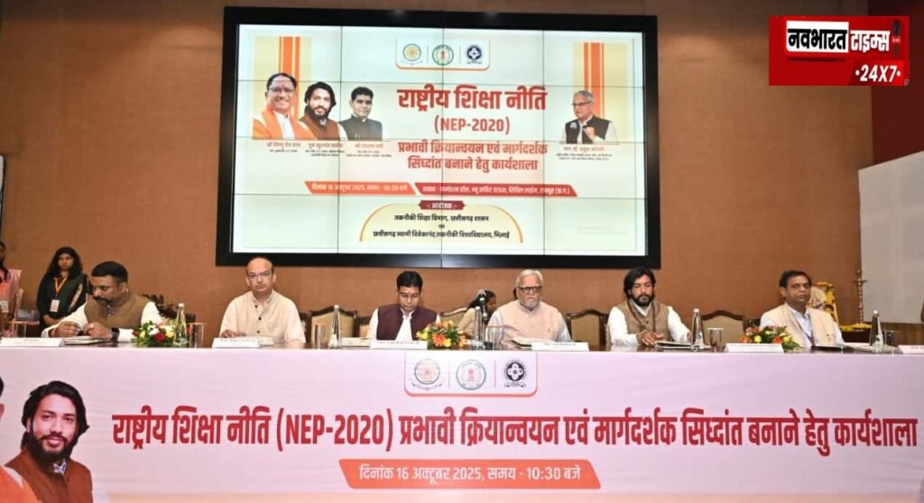 रायपुर, 16 अक्टूबर 2025 राजस्व मंत्री श्री टंक राम वर्मा ने कहा कि राष्ट्रीय शिक्षा नीति (एनईपी-2020) के प्रभावी क्रियान्वयन विषय आयेाजित कार्यशाला केवल एक औपचारिक आयोजन नहीं, बल्कि नए छत्तीसगढ़ के निर्माण की दिशा में एक महत्वपूर्ण कदम है। उन्होंने कहा कि प्रधानमंत्री श्री नरेंद्र मोदी के विजन 2047 के अनुरूप भारत को विकसित एवं समृद्ध राष्ट्र बनाने में नई शिक्षा नीति की भूमिका अत्यंत महत्वपूर्ण है। छत्तीसगढ़ शासन के तकनीकी शिक्षा मंत्री श्री खुशवंत साहेब ने कहा कि राष्ट्रीय शिक्षा नीति 2020 का उद्देश्य केवल सैद्धांतिक ज्ञान तक सीमित न रहकर विद्यार्थियों को व्यावहारिक, कौशल आधारित एवं रोजगारोन्मुखी शिक्षा प्रदान करना है। राष्ट्रीय शिक्षा नीति से छत्तीसगढ़ राज्य में तकनीकी शिक्षा को नई ऊँचाइयाँ मिले राष्ट्रीय शिक्षा नीति (एनईपी-2020) के प्रभावी क्रियान्वयन एवं इस विषय पर मार्गदर्शन के उद्देश्य से आज रायपुर स्थित न्यू सर्किट हाउस में एक दिवसीय कार्यशाला का आयोजन किया गया। यह कार्यशाला तकनीकी शिक्षा विभाग एवं स्वामी विवेकानंद तकनीकी विश्वविद्यालय, भिलाई के संयुक्त तत्वावधान में आयोजित हुई। अनुसंधान और नवाचार को विशेष प्राथमिकता मंत्री श्री वर्मा ने कहा कि नई शिक्षा नीति भारत की शिक्षा व्यवस्था को 21 वीं सदी की आवश्यकताओं के अनुरूप ढालने की दिशा में एक क्रांतिकारी पहल है। उन्होंने बताया कि राज्य में अब तकनीकी शिक्षा संचालनालय के अधीनस्थ तथा स्वामी विवेकानंद तकनीकी विश्वविद्यालय से संबद्ध सभी शासकीय एवं निजी महाविद्यालयों में राष्ट्रीय शिक्षा नीति लागू की जा चुकी है। उन्होंने कहा कि एनईपी-2020 से तकनीकी शिक्षा को नई दिशा मिली है, जिसमें कौशल विकास, व्यावसायिक शिक्षा, अनुसंधान और नवाचार को विशेष प्राथमिकता दी गई है। मल्टीपल एंट्री-एग्जिट सिस्टम, एकेडमिक बैंक ऑफ क्रेडिट और इंडस्ट्री लिंक्ड करिकुलम जैसी व्यवस्थाएं शिक्षा को अधिक लचीला और उपयोगी बना रही हैं। श्री वर्मा ने कहा कि कोई भी नीति या योजना तभी सफल होती है जब हम सब मिलकर उस पर कार्य करें। उन्होंने शिक्षकों को परिवर्तन के वास्तविक वाहक बताते हुए कहा कि उनकी सक्रिय भागीदारी से ही नीति के उद्देश्यों की पूर्ति संभव है। नवाचार, कौशल और भारतीय ज्ञान परंपरा को जोड़ना समय की आवश्यकता मंत्री श्री खुशवंत साहेब ने कहा कि तकनीकी शिक्षा में भारतीय ज्ञान परंपरा, नवाचार और कौशल विकास को प्रायोगिक स्तर पर सम्मिलित करना समय की आवश्यकता है। उन्होंने शिक्षकों और संस्थानों से आह्वान किया कि वे विद्यार्थियों को प्रयोग, अनुसंधान और उद्यमिता के लिए प्रेरित करें, ताकि वे आत्मनिर्भर भारत के निर्माण में अपनी सक्रिय भूमिका निभा सक