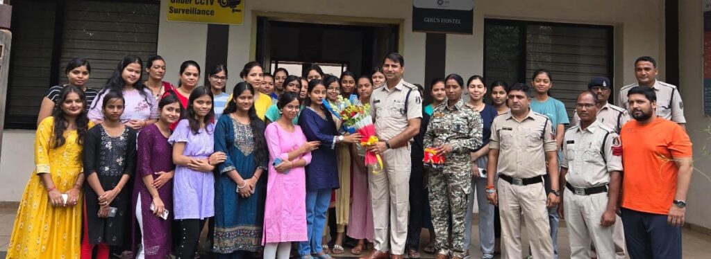( शैलेश शर्मा ) : रायगढ़ : पुलिस अधीक्षक दिव्यांग कुमार पटेल के निर्देशन में रायगढ़ पुलिस ने महिलाओं और बच्चों की सुरक्षा को प्राथमिकता देते हुए एक विशेष अभियान चलाया है। इसी कड़ी में आज थाना पूंजीपथरा के प्रभारी निरीक्षक राकेश कुमार मिश्रा ने अपने स्टाफ के साथ OP जिंदल यूनिवर्सिटी के गर्ल्स हॉस्टल का दौरा किया। रक्षाबंधन के शुभ अवसर पर पुलिस टीम ने छात्राओं को सुरक्षा संबंधी निर्देश दिए और उनके साथ चॉकलेट और मिठाई बांटकर इस त्योहार की खुशियां साझा कीं।