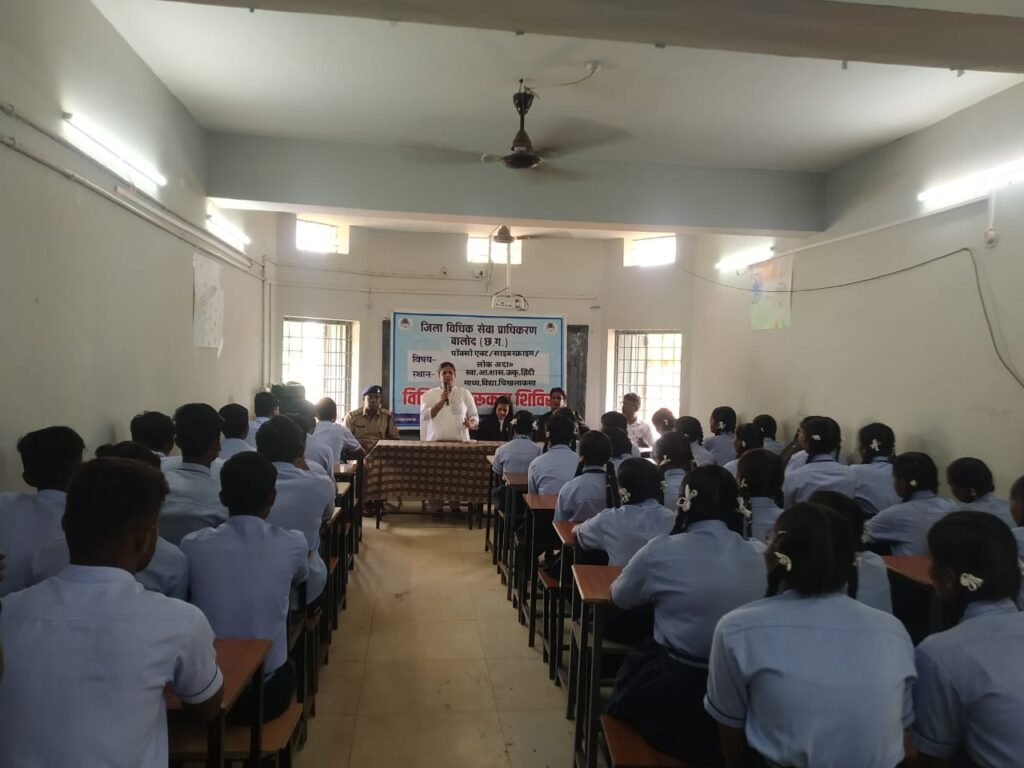 स्वामी आत्मानंद शासकीय उत्कृष्ट हिंदी माध्यम विद्यालय चिखलाकसा में विधिक जागरूकता शिविर का आयोजन कर उपस्थित लोगो को नया कानून ,किशोर न्याय बोर्ड पॉक्सो एक्ट सायबर क्राइम ,मोबाइल के उपयोग पर सावधानी आगामी नेशनल लोक अदालत के संबंध में विधिक संबंधी कानूनों की जानकारी प्रदान किया गया। उक्त अवसर पर थाना प्रभारी सुनील तिर्की , सीनियर अधिवक्ता पवन कुमार गोयल, जगेन्द्र भारद्वाज, रेशमा बनो एवं शाला के प्राचार्य श्री आर के देवांगन , व्याख्याता- एम,एस, साहू , एम, एस, नयन , जी आर सोरी, पी, के नायक, डी, पारकर, जैकलीन कैरी पैरालीगल वालेंटियर मनीष श्रीवास (थाना डौंडी) , सत्यम मंडावी( थाना महामाया) उपस्थित रहे।