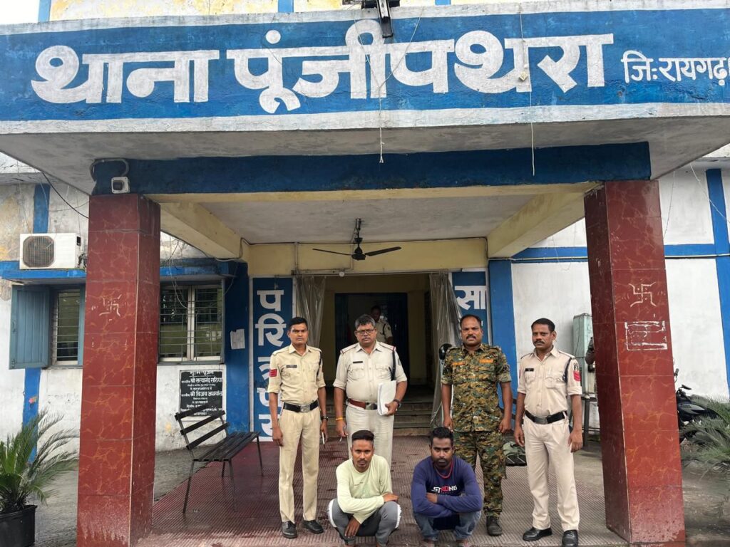 जेलपारा रायगढ़ के अकबर खान पिता बफाती खान उम्र 30 वर्ष और राकेश लहरे पिता स्व मोतीराम लहरे उम्र 33 वर्ष को पकड़ा गया जिनके पास जुमला ₹1000 और स्टाईगर गोटी जप्त किया गया है । आरोपियों पर थाना पूंजीपथरा में जुआ (प्रतिषेध) अधिनियम 2022 की धारा 6 के तहत कार्यवाही की गई है ।