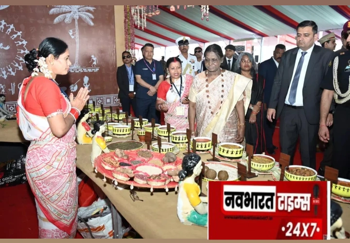 रायपुर: बस्तर पंडुम के शुभारंभ समारोह में शामिल होने पहुंचीं राष्ट्रपति श्रीमती द्रौपदी मुर्मु ने बस्तर की माटी की सुगंध और आदिम जनजातीय परंपराओं पर आधारित भव्य प्रदर्शनी का अवलोकन किया। इस अवसर पर राष्ट्रपति ने विभिन्न स्टॉलों का भ्रमण कर स्थानीय कारीगरों और निवासियों से प्रदर्शित कलाओं, शिल्पों और उत्पादों की विस्तृत जानकारी ली।
