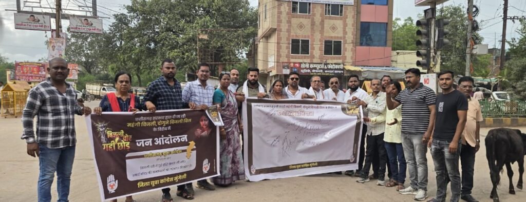 मुंगेली। लगातार बढ़ते बिजली बिलों ने आम जनता की जिंदगी को मुश्किल बना दिया है। इस मुद्दे पर आवाज उठाने के लिए युवा कांग्रेस मुंगेली ने प्रदेश युवा कांग्रेस के निर्देश पर एक व्यापक हस्ताक्षर अभियान और नुक्कड़ सभा का आयोजन किया, जिसमें बड़ी संख्या में लोग शामिल हुए।कार्यक्रम में जनता ने बढ़ते बिजली दामों के खिलाफ अपना विरोध दर्ज कराया।