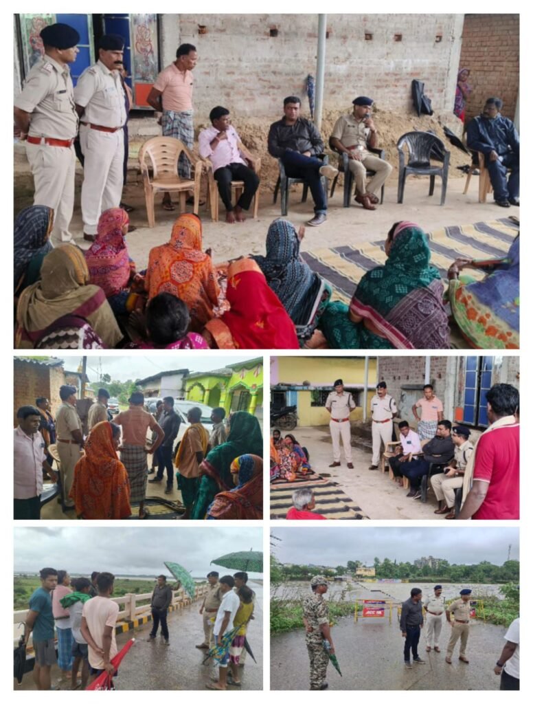 रायगढ : आज पुलिस अधीक्षक दिव्यांग कुमार पटेल द्वारा नगर पुलिस अधीक्षक आकाश शुक्ला, थाना प्रभारी पुसौर रोहित बंजारे व उनके स्टाफ के साथ थाना पुसौर क्षेत्र अंतर्गत बाढ़ प्रभावित गांवों का भ्रमण किया गया ।