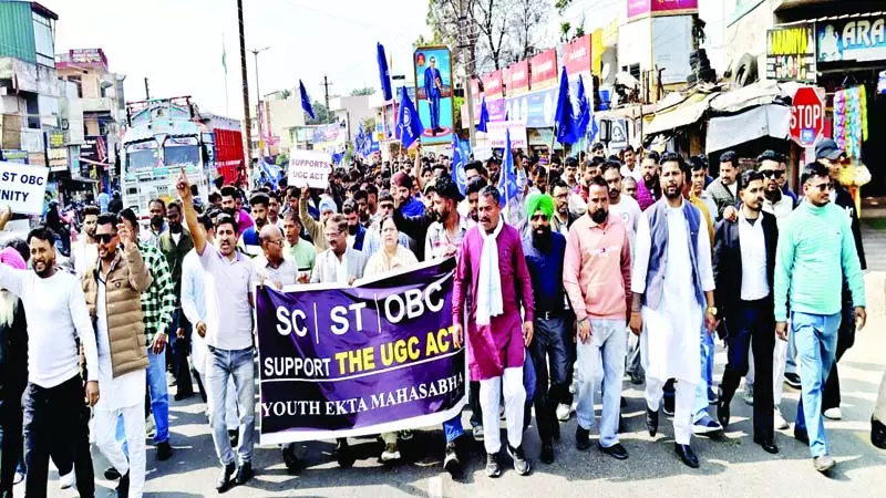 ऊना: हिमाचल प्रदेश के ऊना में मंगलवार को महर्षि वाल्मीकि गुरु रविदास यूथ एकता महासभा हिमाचल प्रदेश के बैनर तले विश्वविद्यालय अनुदान आयोग (यूजीसी) के समर्थन में प्रदर्शन किया गया।