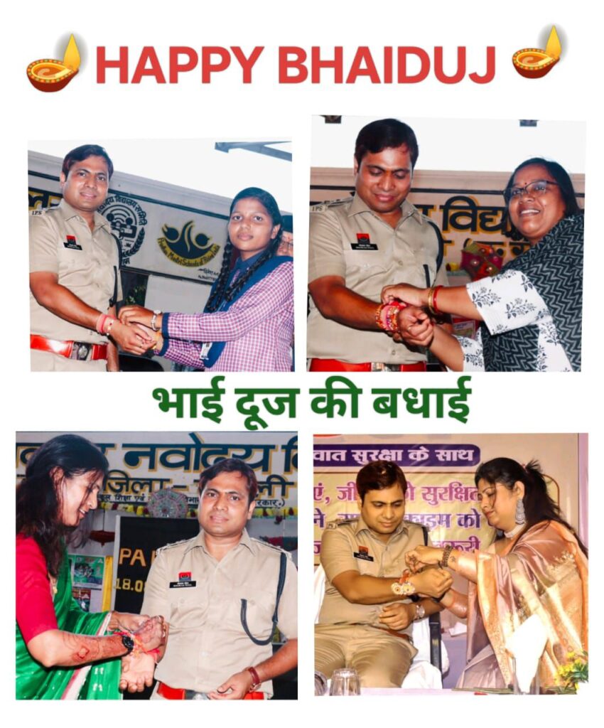 भाई दूज की परंपरा को अपनाते हुए विभिन्न स्थानों से आई बहनों, बालिकाओं और महिलाओं ने एसपी पटेल की कलाई पर रंग-बिरंगे रक्षा सूत्र बांधे, जो न केवल पारिवारिक बंधन का प्रतीक था, बल्कि पूरे जिले की सुरक्षा के लिए एक सामूहिक संकल्प का भी। इस दौरान माहौल में उत्साह छा गया, जब सभी ने मिलकर संकल्प लिया कि ‘रक्षा सूत्र की तरह हम सबकी सुरक्षा अटूट रहे’।