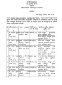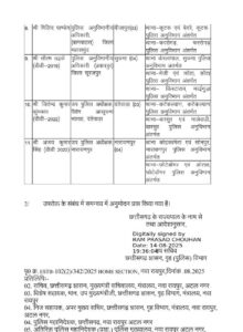 जारी आदेश के अनुसार, जांजगीर-चांपा में पदस्थ DSP जितेंद्र कुमार खुंटे को दंतेवाड़ा, बेमेतरा में पदस्थ मनोज कुमार तिर्की को बीजापुर, रायपुर में पदस्थ योगेश कुमार साहू को कांकेर, सक्ती में पदस्थ मनीष कुमार कुंवर को सुकमा, बिलासपुर में पदस्थ सिद्धार्थ बघेल को बीजापुर, कोण्डागांव में पदस्थ लितेश सिंह को गरियाबंद, दुर्ग में पदस्थ हरिश कुमार पाटिल को बीजापुर, महासमुंद में पदस्थ मिलिंद पांडेय को बीजापुर, सूरजपुर में पदस्थ सौरभ उइके को सुकमा, दंतेवाड़ा में पदस्थ जितेंद्र कुंभकार को दंतेवाड़ा, नारायणपुर में पदस्थ अजय कुमार सिंह को नारायणपुर जिले में ही (थाना बारसुर, मालेवाड़ी, कोहकामेटा, सोनपुर, छोटेडोंगर, ओरछा) की जिम्मेदारी दी गई है