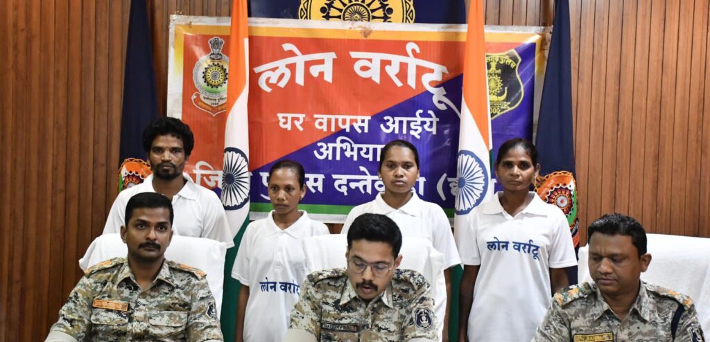 दंतेवाड़ा में 20 लाख के इनामी 4 माओवादियों का आत्मसमर्पण, लोन वर्राटू अभियान की बड़ी सफलता..