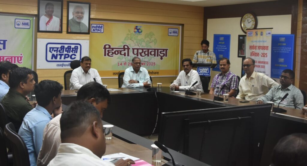 घरघोड़ा : एनटीपीसी तलईपल्ली कोयला खनन परियोजना में 15 सितंबर 2025 को हिंदी दिवस के उपलक्ष्य में शपथ ग्रहण समारोह का आयोजन किया गया। यह कार्यक्रम अखिलेश सिंह, परियोजना प्रमुख एवं मुख्य महाप्रबंधक, एनटीपीसी तलईपल्ली की अध्यक्षता में संपन्न हुआ।