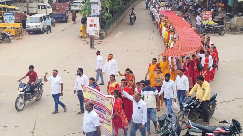 25 वें दिन आंदोलन करने वाले कर्मचारी आज अनोखा प्रदर्शन करते हुए माता की शरण में पहुंचे! हड़ताली कर्मचारियों ने धरना स्थल से आगर खेल परिसर से दाऊपारा स्थित माँ महामाया मंदिर तक लंबी मनोकामना चुनरी यात्रा निकाली! इस दौरान सभी कर्मचारी पैदल चलते हुए माता के दरबार पहुंचे!