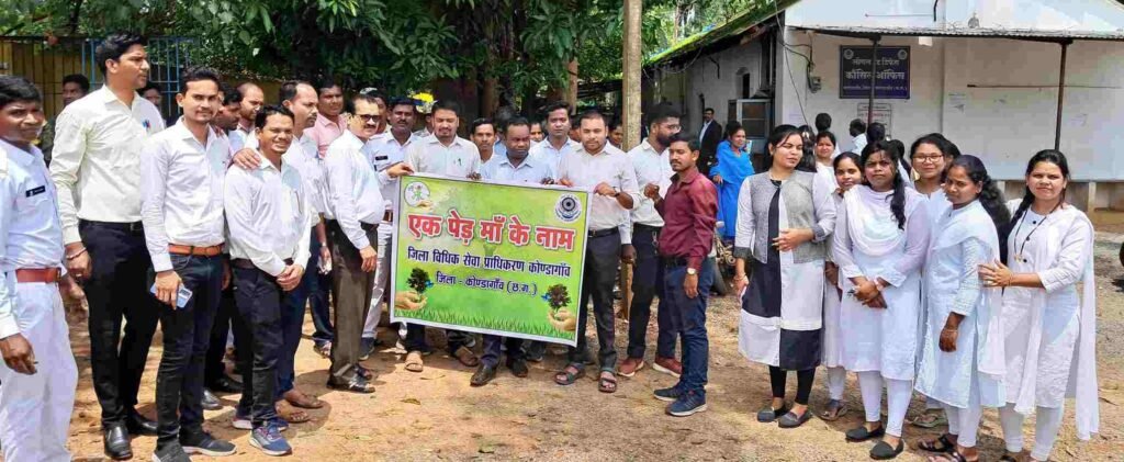कोंडागांव : न्यायालय परिसर में वृक्षारोपण के माध्यम से पर्यावरण संरक्षण का संदेश दिया गया। प्रधान जिला एवं सत्र न्यायाधीश एवं जिला विधिक सेवा प्राधिकरण के अध्यक्ष उत्तरा कुमार कश्यप की उपस्थिति में जिला एवं अपर सत्र न्यायाधीश एफ.टी.एस.सी (पॉक्सो) कमलेश कुमार जूर्री, अपर जिला एवं सत्र न्यायाधीश , विक्रम प्रताप चन्द्र, प्रथम श्रेणी न्यायिक मजिस्ट्रेट, शिव प्रकाश त्रिपाठी, जिला विधिक सेवा प्राधिकरण की सचिव कु. गायत्री साय, लीगल एड डिफेंस कौंसिल कोण्डागांव के अधिवक्तागण एवं जिला कोण्डागांव के समस्त अधिवक्ता, न्यायिक कर्मचारी एवं पैरालीगल वालिंटियर के द्वारा एक पेड़ मां के नाम अभियान के तहत जिला न्यायालय परिसर कोण्डागांव में वृक्षरोपण किया गया।