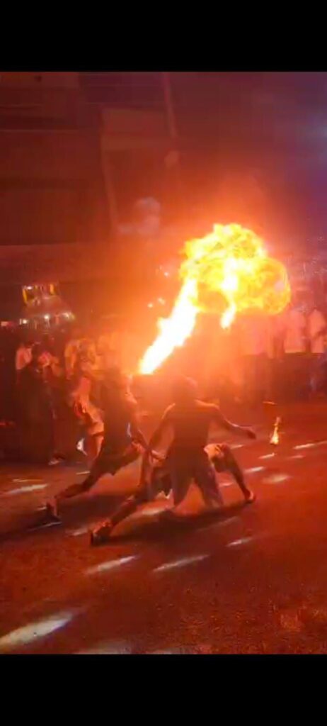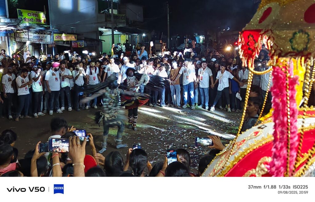 शरीर पे भस्म(राख)लगाए,गले मे शिवजी के प्रतीक नरमुंडों की माला,चिमटा,कमण्डल लिए साधना और तपस्या में लीन,तांत्रिकी प्रक्रिया,श्मशान साधना, रहस्यमयी शक्तियों के उम्दा प्रदर्शन,मां काली दर्शन,त्रिकालदर्शी शिव तांडव,अग्नि फायर नृत्य,अघोरी नृत्य, महाकाल झांकी ने दर्शकों को मनोरंजित,रोमांचित कर दिया नगर के ह्रदय स्थल बस स्टैंड में प्रस्तुति के दौरान पूरा परिसर यंहा तक छत भी पूरी तरह खचाखच भर गया भक्तो की तालियां ने उत्साह और भक्ति के समावेश को दोगुना कर दिया और बप्पा के विसर्जन की सुंदर झांकियों और वातावरण ने सही मायने में “सरगांव के राजा” श्री गणेश जी के विसर्जन में निकली यात्रा का अनुभव दरबार बना और भक्तगण दरबारी।