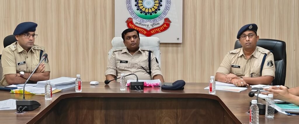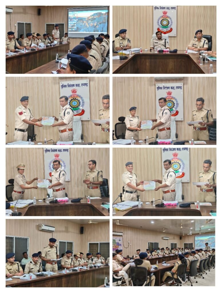 रायगढ़ : पुलिस अधीक्षक दिव्यांग कुमार पटेल द्वारा जिले के राजपत्रित अधिकारियों, थाना, चौकी प्रभारी और शाखा प्रमुखों के साथ पुलिस कंट्रोल रूम में अपराध समीक्षा बैठक ली गई । बैठक में सर्वप्रथम पुलिस अधीक्षक द्वारा गत माह फरार आरोपियों की दिगर प्रांत से गिरफ्तारी, गुम नाबालिगों की दस्तयाबी, डॉयल 112 तथा थाने के स्टाफ द्वारा किये गये उल्लेखनीय कार्यों की जानकारी लिया गया । पुलिस अधीक्षक ने प्रभारियों को पुलिस के बेसिक कार्यों के साथ साथ सामुदायिक पुलिसिंग के कार्य करने प्रेरित किया गया जिससे पुलिस की छवि अच्छी बने ।