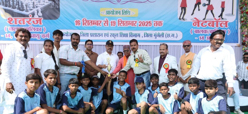 मुंगेली : 25वीं राज्य स्तरीय शालेय क्रीड़ा प्रतियोगिता 2025 का समापन हो गया। प्रतियोगिता में शतरंज और नेटबॉल खेलों का आयोजन किया गया, जिसमें पूरे राज्य भर से खिलाड़ियों ने भाग लिया।