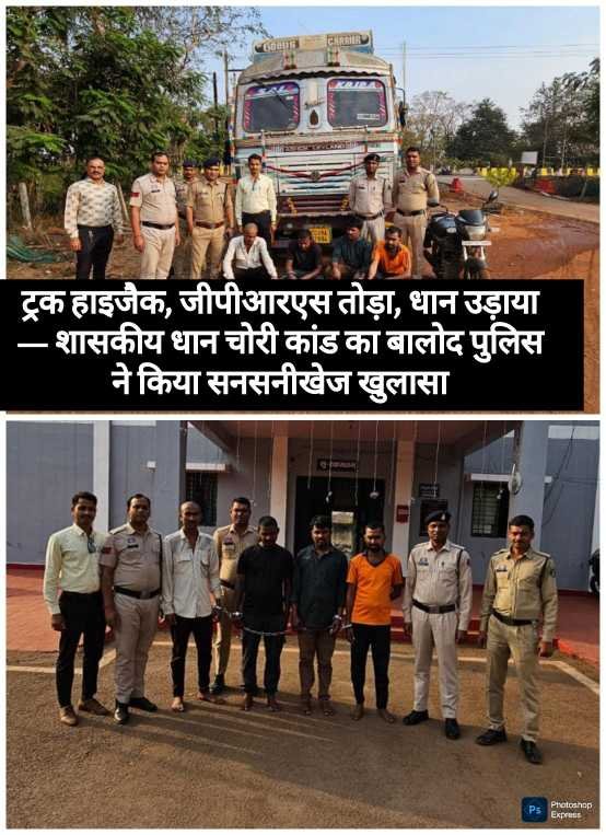 धान चोरी गैंग का भंडाफोड़: ट्रक अपहरण, 280 कट्टा शासकीय धान गायब – बालोद पुलिस का बड़ा एक्शन