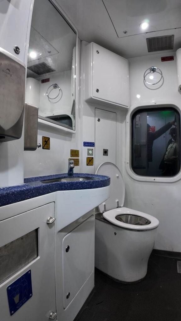 निरीक्षण के दौरान केंद्रीय मंत्री ने स्लीपर कोचों का गहन अवलोकन किया, जिसमें सीटिंग एवं बर्थिंग व्यवस्था, आधुनिक इंटीरियर, संरक्षा विशेषताएँ तथा यात्री सुविधा प्रणालियाँ शामिल थीं। निरीक्षण के दौरान यात्री सुरक्षा और ऑनबोर्ड सुविधाओं पर विशेष जोर दिया गया।