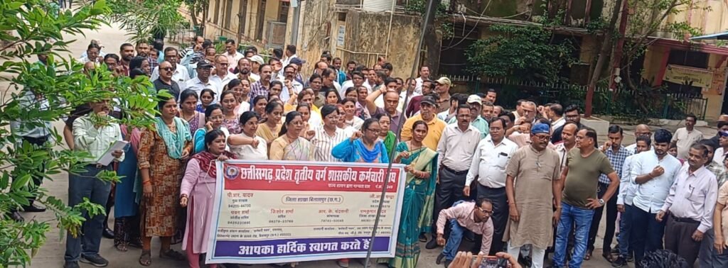 केंद्र सरकार के समान देय तिथि से महंगाई भत्ता एवं राज्य कर्मचारियों से जुड़ी 13 सूत्रीय मांगों को लेकर छत्तीसगढ़ प्रदेश तृतीय वर्ग शासकीय कर्मचारी संघ, बिलासपुर एवं छत्तीसगढ़ कर्मचारी अधिकारी पेंशनर्स एसोसिएशन ने आज संयुक्त रूप से ध्यानाकर्षण प्रदर्शन किया। यह प्रदर्शन प्रांतीय निकाय के आह्वान पर प्रदेश अध्यक्ष जी.आर. चंद्रा एवं मुख्य संरक्षक पी.आर. यादव के नेतृत्व में किया गया।