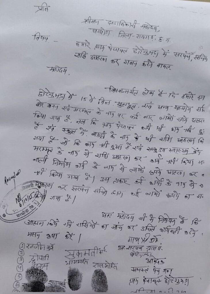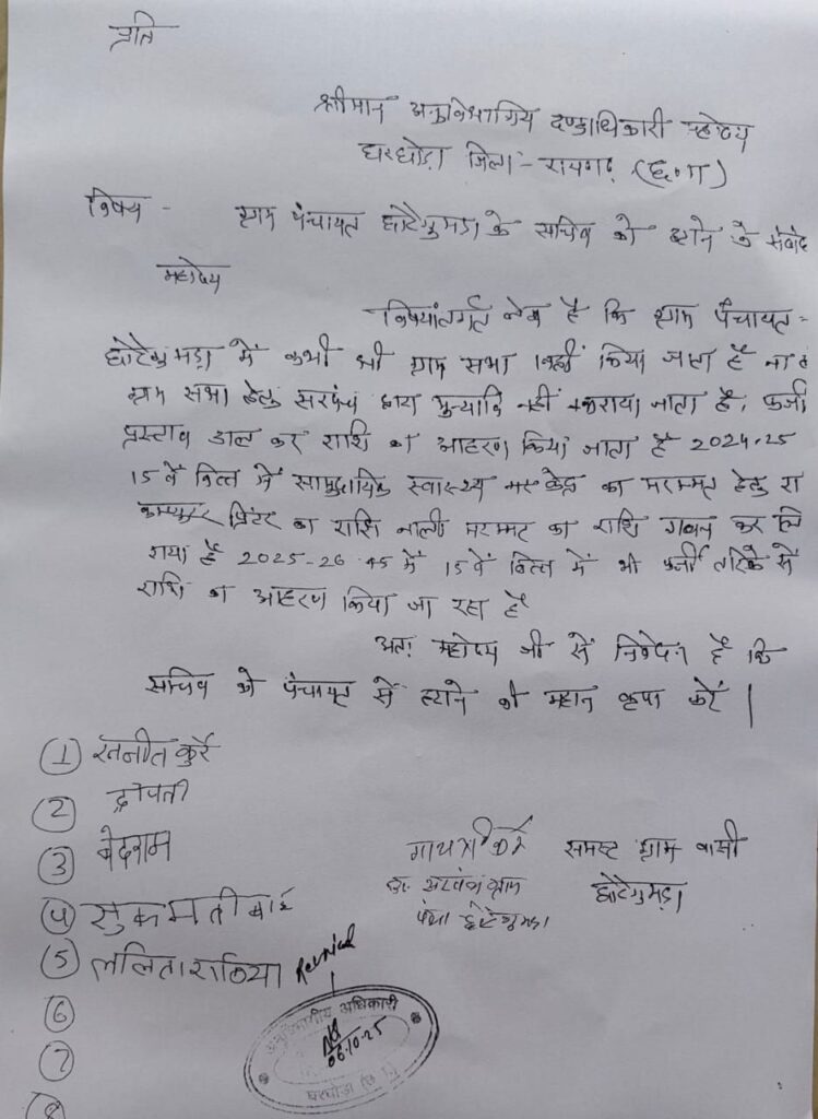 ग्रामीणों ने इस पूरे मामले की शिकायत अनुविभागीय दंडाधिकारी (एसडीएम) घरघोड़ा से करते हुए, फर्जी आहरण की जांच और सचिव के खिलाफ सख्त कार्रवाई की मांग की है।