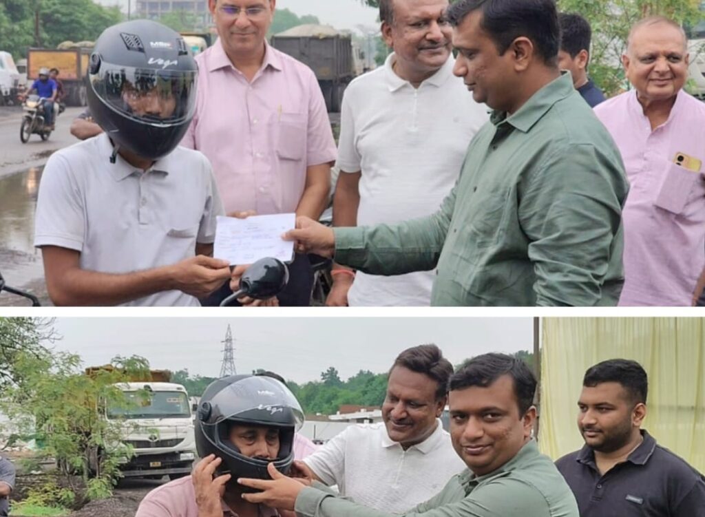 शैलेश शर्मा : रायगढ़ : जिला पुलिस रायगढ़ द्वारा सामुदायिक पुलिसिंग के तहत सड़क दुर्घटनाओं में मृत्यु दर को कम करने और हेलमेट के प्रति जागरूकता बढ़ाने के लिए विशेष अभियान चलाया जा रहा है। इस अभियान के अंतर्गत, मोटर व्हीकल एक्ट के तहत चालानी कार्यवाही के बाद नियम तोड़ने वालों को निशुल्क हेलमेट वितरित किए जा रहे हैं। इस पहल का लक्ष्य पांच हजार से अधिक व्यक्तियों को हेलमेट प्रदान करना है, जो लगातार जारी है।
