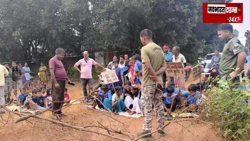 गड्ढों में तब्दील सड़क से तंग आए ग्रामीण और स्कूली बच्चे सड़क पर उतरे, पुलिस ने मौके पर पहुंचकर दिलाया मरम्मत का भरोसा